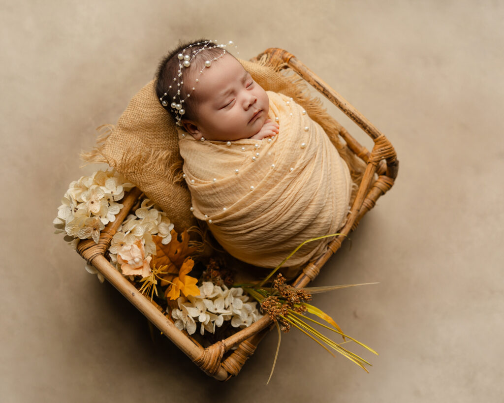 As your Redlands photographer, I keep a wide variety of pink wraps, headbands, and floral elements in studio. We can keep it soft and simple or go all-out with layered textures and delicate touches.
